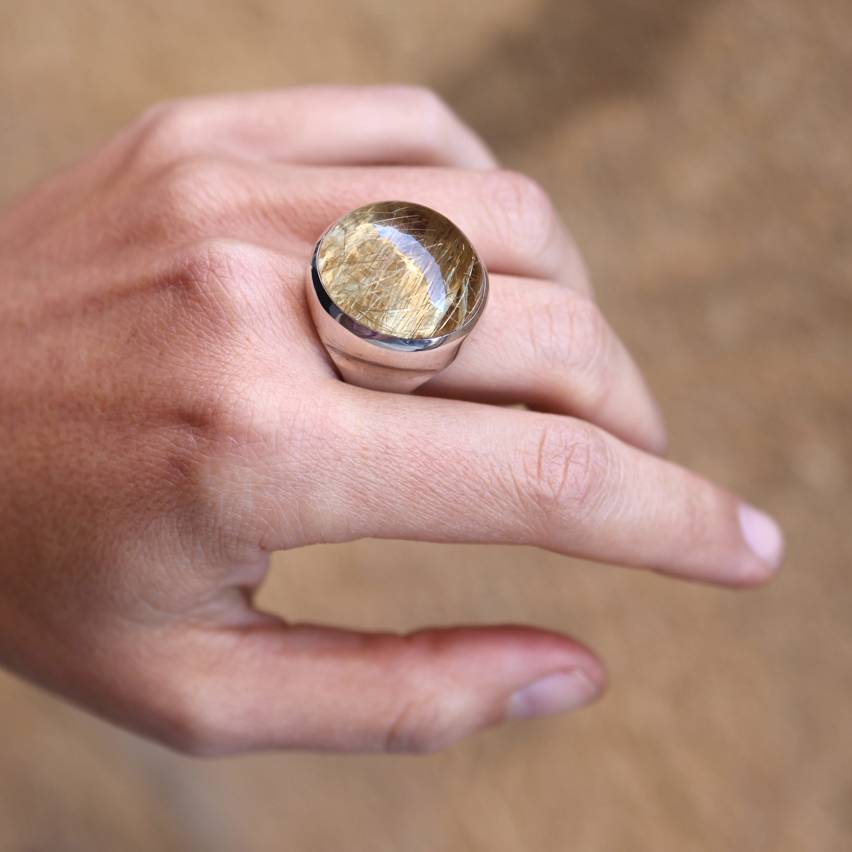 Bague en argent 925 et Quartz rutile de qualité exceptionnelle